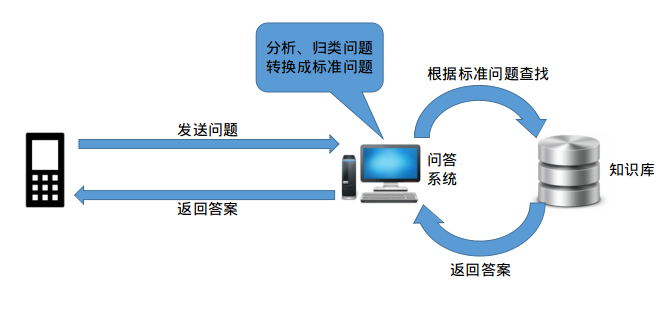 用户在前台(网页或手机)提问,后台进行处理,处理的核心无非是回答接收到的问题,所以,客服机器人的核心是回答问题,于是提炼出了第一个关键词:问答系统,其核心在于同一个问题有很多不同的提问方式,我们的问答系统需要正确地理解这个问题;在正确的理解问题之后,我们面临第二个问题:如何回答,程序是不能凭空产生回答的,他需要有一个知识库,就像大脑需要经常读书、储备知识一样。于是,提炼出了第二个关键词:知识库。