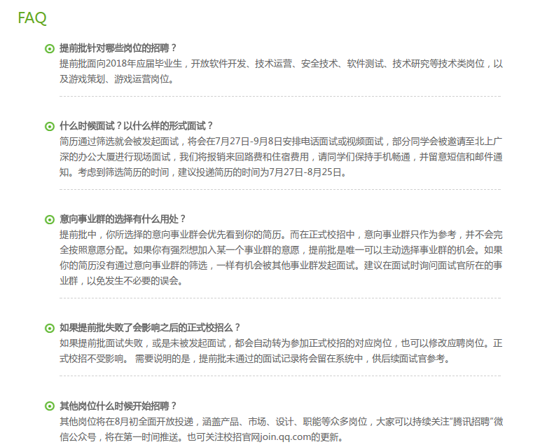 "其他岗位将在8月初全面开放投递,涵盖产品、市场、设计、职能等众多岗位,大家可以持续关注“腾讯招聘”微信公众号,将在第一时间推送。也可关注校招官网join.qq.com的更新。"