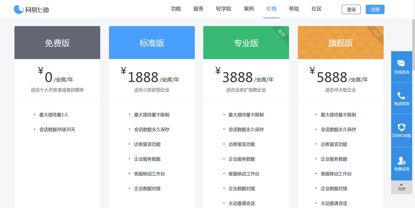 制作一个客服机器人,可以说这是一个非常笼统的需求。如果沿着这个思路去做,我们会发现,已经有不少可以直接集成的平台。比如网易七鱼,如下图:
