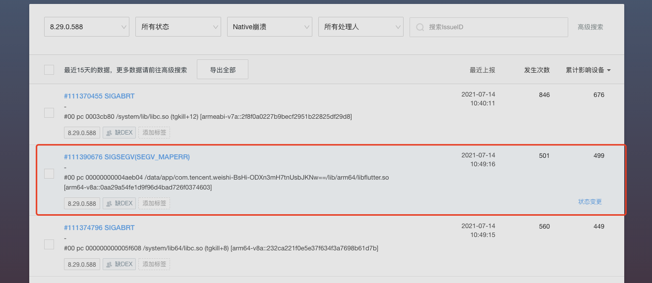 - 继续上一个猜想,我们直接把带符号表的so打入微视,然后跑稳定性测试,抓到堆栈用同一个so仍然无法还原!