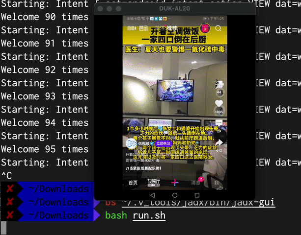 adb shell am start -a android.intent.action.VIEW -d 'weishi://horizontal_video?*****************'