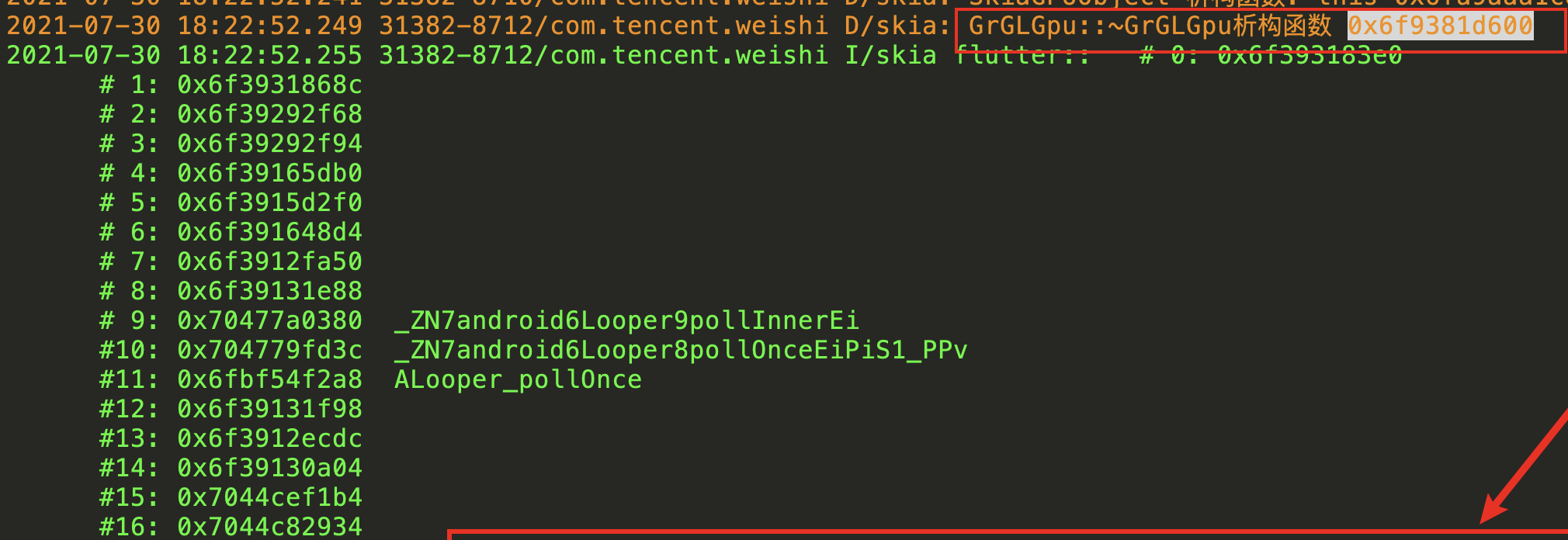#02 pc 000000000021b5e8 /data/app/com.tencent.weishi-DT3Bh5C_tryVQSznNp4AeA==/lib/arm64/libflutter.so [arm64-v8a::0aa29a54fe1d9f96d4bad726f0374603]