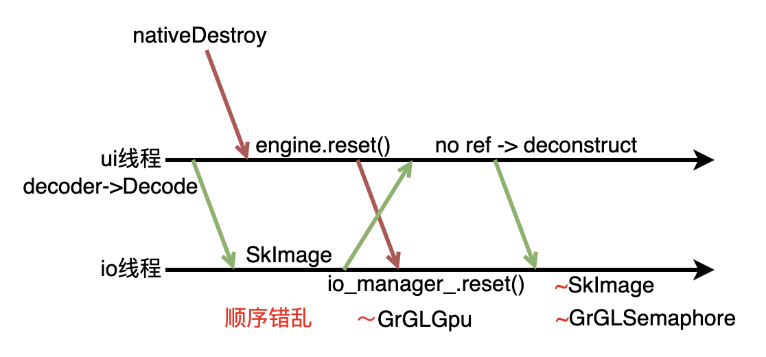 io_manager_会导致GrGLGpu实例的析构; - ui线程请求解码的图片解码完成,返回给ui线程,此时在代码清单中会直接命中CASE 1(因为ui线程已经销毁了,故 代码清单 5 的callback中