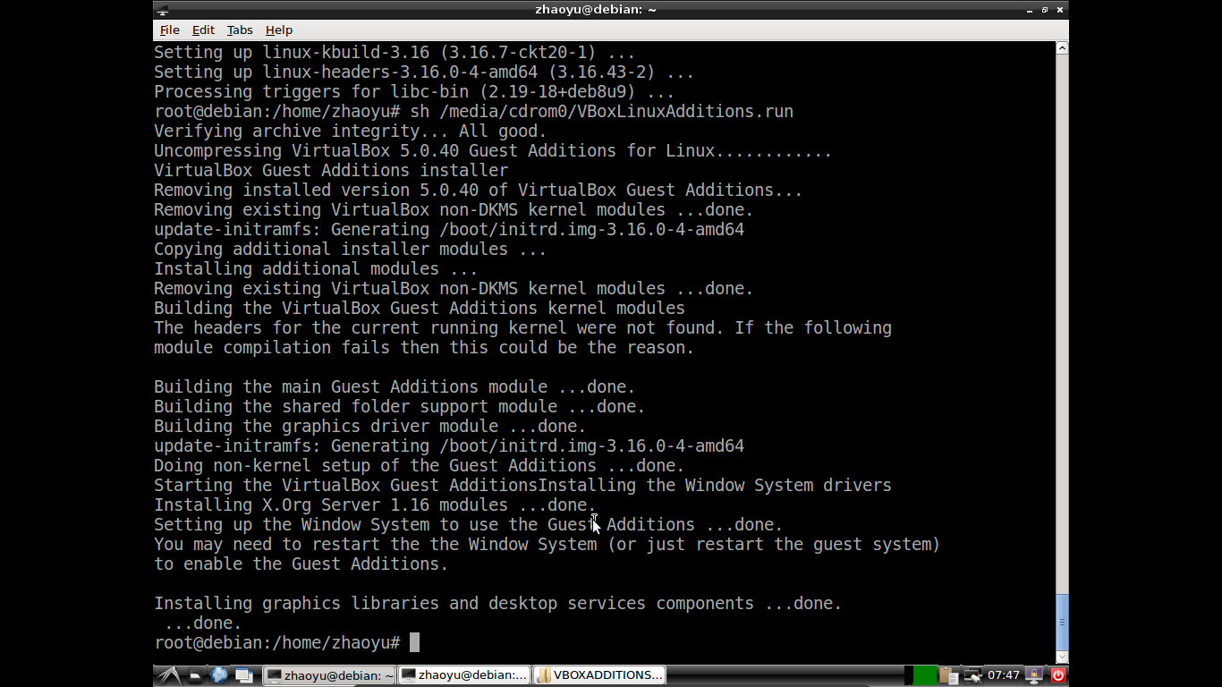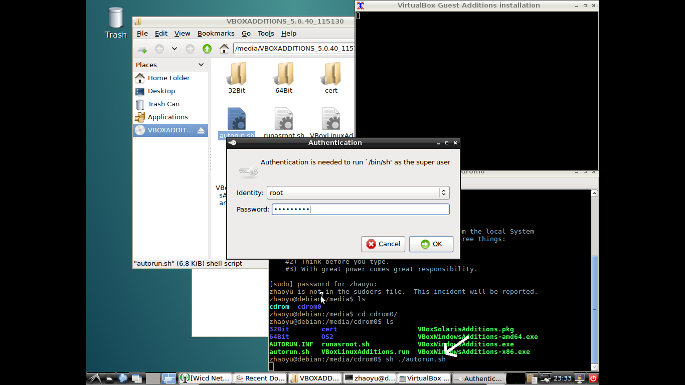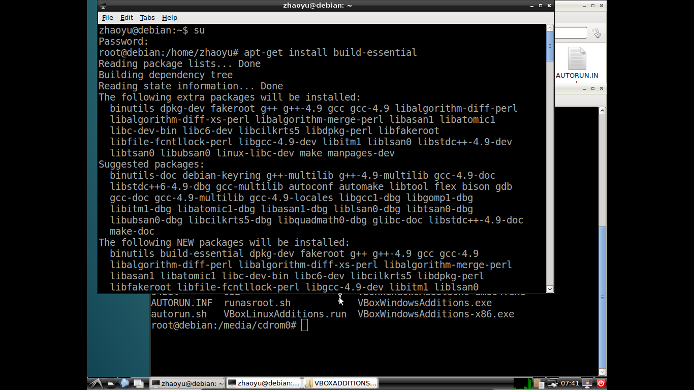 VirtualBox下Debian增强功能的安装