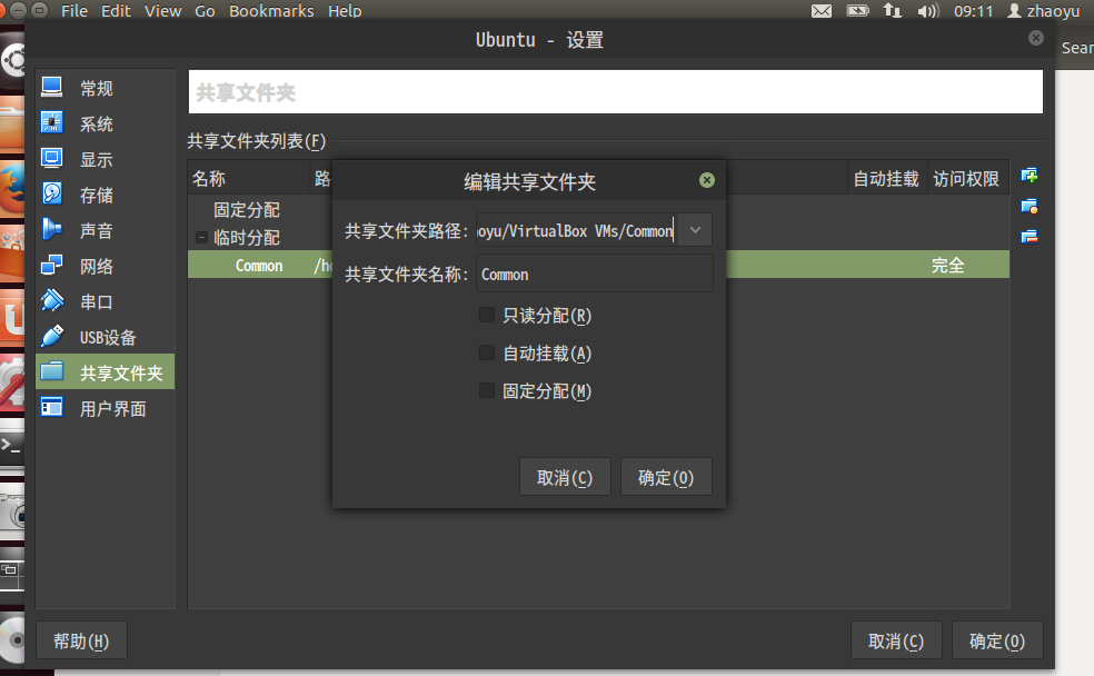 第一步,配置VirtualBox,记住共享文件夹名称: