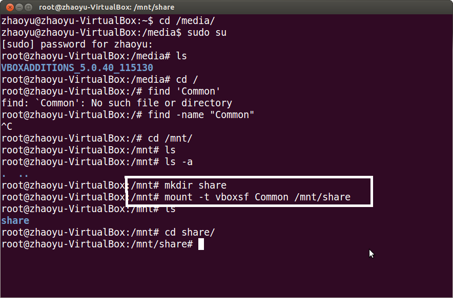 关于挂载位置,mnt就是mount的缩写,放的就是一些挂载的设备文件,但挂载之后,如果想把自己用户目录下文件移到共享目录需要root才行,应该也可以直接挂载在用户目录下,下次可以试试。